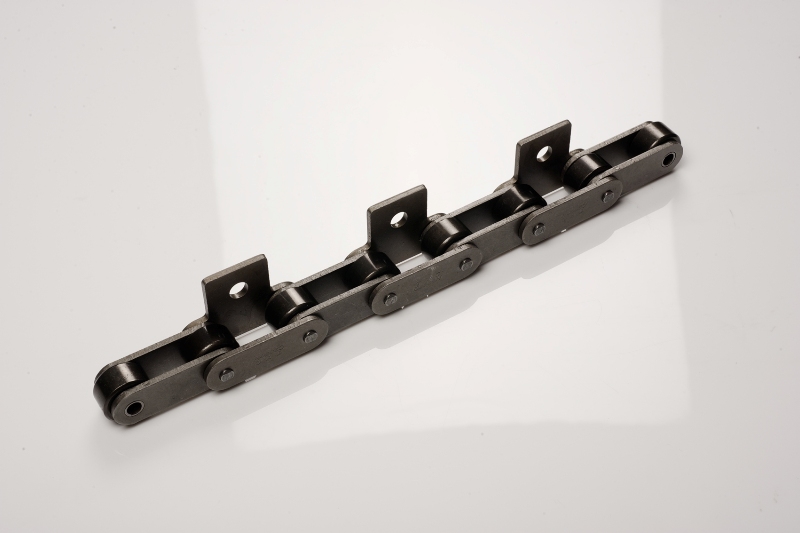 TYC ANSI / ISO standard roller chain attachments are also available with nickel-plating, zinc-plating, stainless steel, and optimum coating for corrosion resistance. Custom attachments and various spacing of the attachments are also available upon request. For conveyors or other applications where parallel strands are used, chains can be supplied in matched sets for even loading and smotth operation.